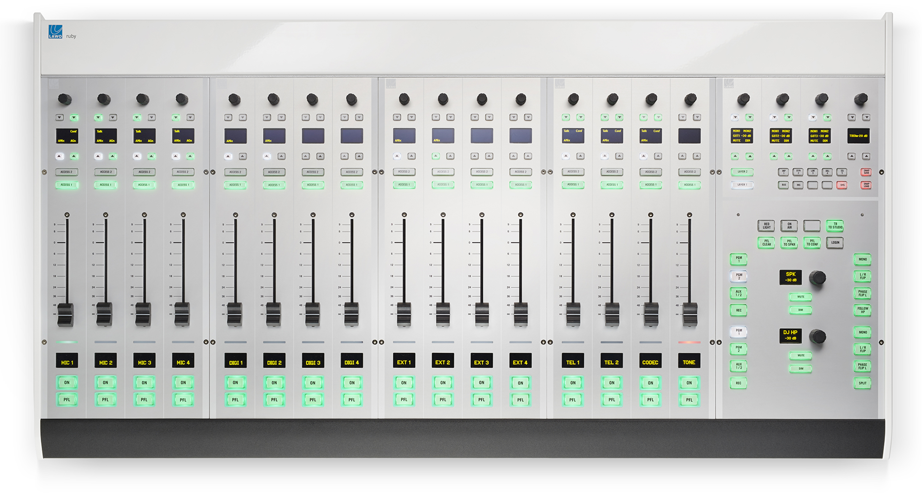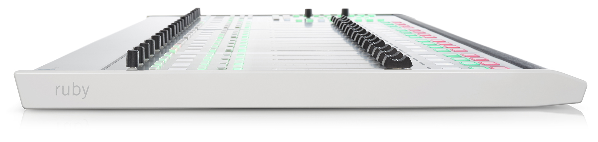 - Motorized 100 mm faders, touch-sensitive to allow instant override of pre-programmed levels
