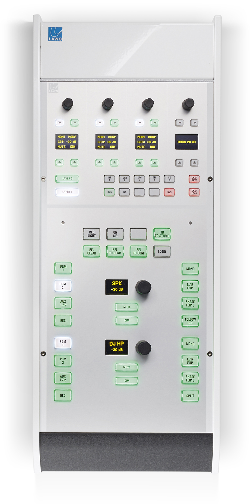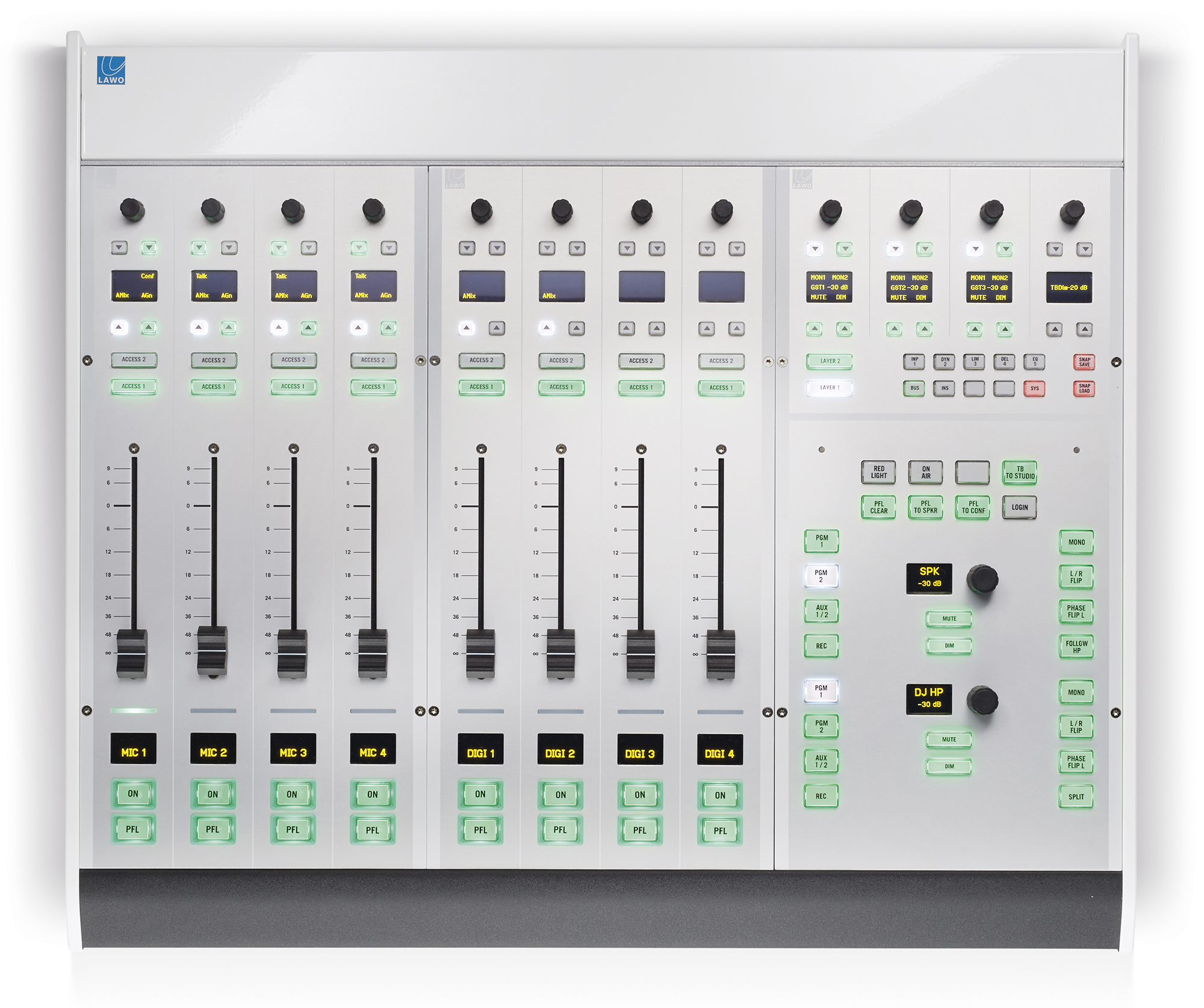 - Programmable logic core (for “On-Air” tallies, Fader Start commands, Talkback integration, etc.)